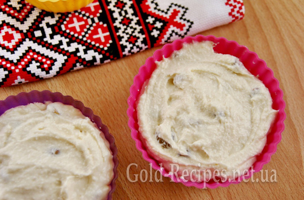 Я брала силіконові форми для мафінів, їх змащувати не потрібно. Але якщо у вас або паперові формочки, або скляні, або керамічні, то їх неодмінно треба попередньо змастити (дно і боки) вершковим маслом, а потім вже викладати сирну масу.