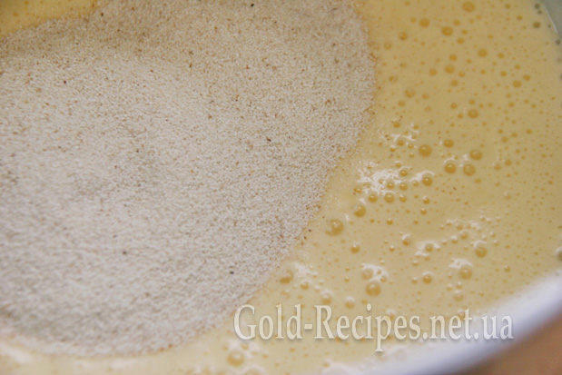 Потім викладаємо в ємність із цукрово-яєчною сумішшю манку, перемішуємо та залишаємо на 20-30 хвилин, щоб манка трохи набухла.