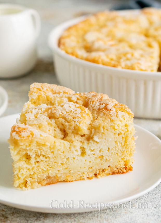 Готовий цукровий пиріг дістаємо з духовки, накриваємо рушником і даємо йому охолонути до теплого стану. Подаємо випічку з чаєм чи кавою.