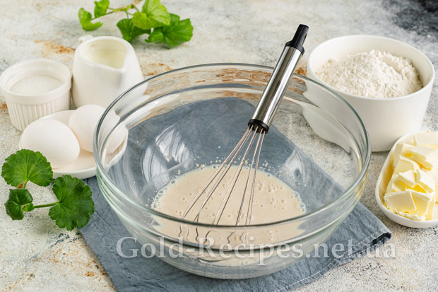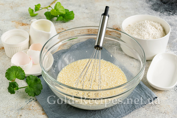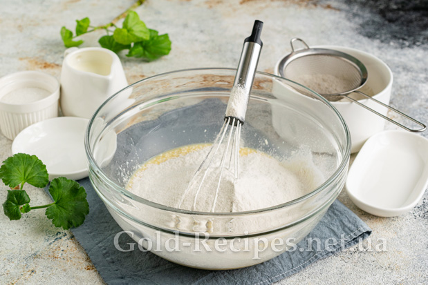 Ретельно перемішуємо інгредієнти вінчиком, досягаючи однорідної консистенції. Щоб підкреслити смак решти інгредієнтів, додаємо в тісто дрібку солі. Для аромату вводимо в тісто ванілін, ванільний цукор чи екстракт.