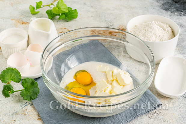У опару, що підійшла, додаємо 2 яйця і розм’якшене вершкове масло.