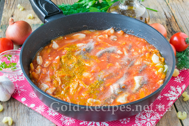 Наприкінці приготування доведемо підливу до смаку, додавши сіль і мелені спеції.