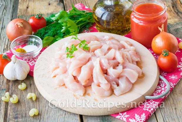 Для рецепта можна використовувати куряче м’ясо, зрізане з кістки або ніжнішу грудку.