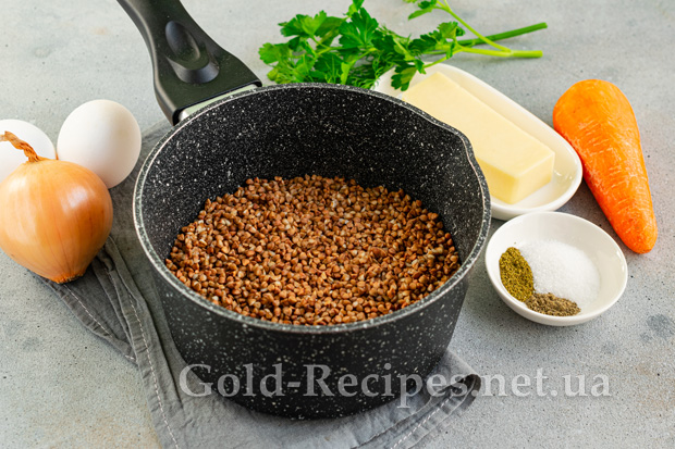 Гречану крупу перебираємо, ретельно промиваємо під проточною холодною водою, перекладаємо в ківш або невелику каструлю.