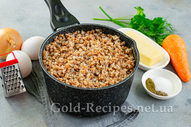 Остуджуємо гречку до кімнатної температури. Для рецепта можна використовувати гречану кашу, що залишилася з вечері.