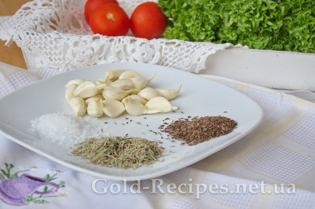 Підготуємо всі інгредієнти для маринаду: чистимо часник, відміряємо розмарин, кмин і морську сіль.