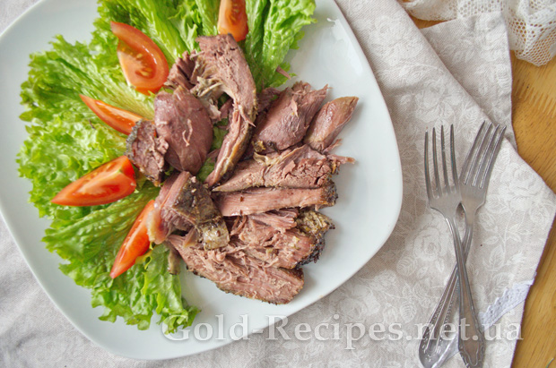 Через зазначений час можна дістати баранину з духовки і перевірити готовність: якщо м’ясо легко відходить від кісточки, значить наша баранина готова.