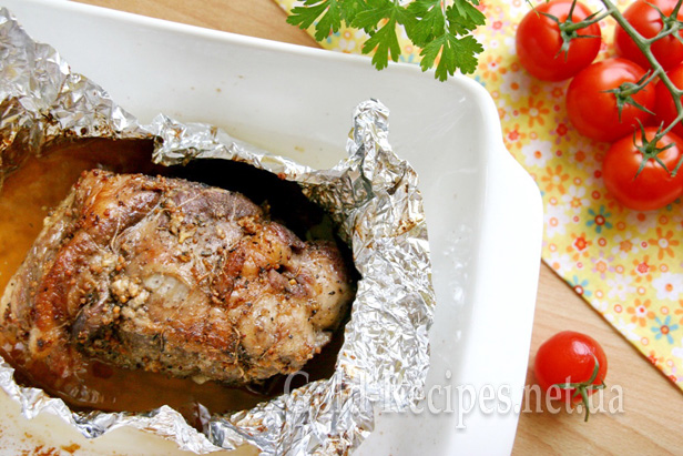 Після закінчення цього часу акуратно розгортаємо фольгу, відкриваючи м’ясо, і знову ставимо форму в духовку на 20-30 хвилин.