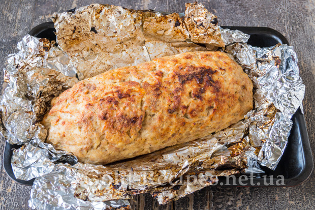 Через годину рулет повністю пропечеться. Обережно дістанемо деко з гарячої духовки. Обережно розгорнемо фольгу.