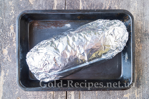 Тепер щільно загорнемо нашу заготовку в кілька шарів фольги, щоб рулет добре тримав форму.