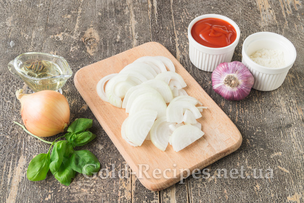 Ріпчасту цибулю почистимо, помиємо та поріжемо півкільцями.
