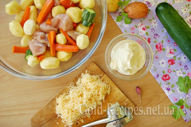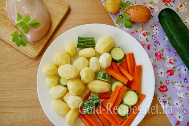 Миємо й очищаємо картоплю, моркву та часник. Симпатичний вигляд має, якщо картоплю підібрати невелику, приблизно однакового розміру.
