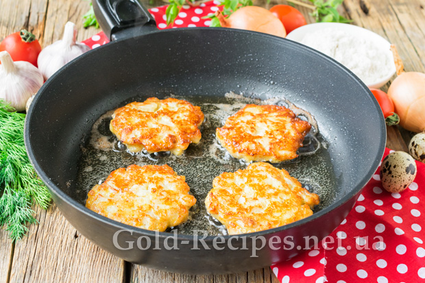 На сковороду з розігрітою олією столовою ложкою викладемо фарш, формуючи круглі або овальні вироби.