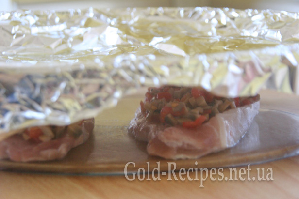 Через 30 хвилин дістаємо форму з м’ясом, знімаємо фольгу.