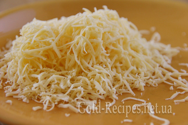 Поки м’ясо з грибами та помідорами запікається, сир тремо на дрібну або середню тертку.