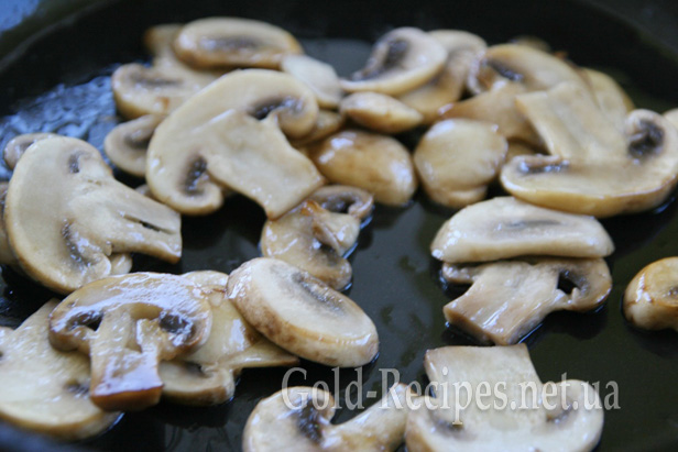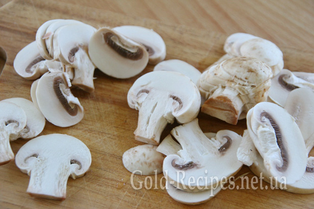 Печериці миємо, чистимо, якщо це необхідно. Ріжемо пластинками.