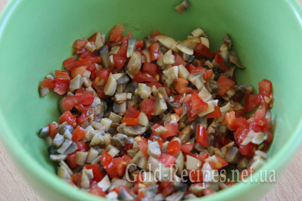 Змішуємо гриби і помідори, солимо і перчимо за смаком.