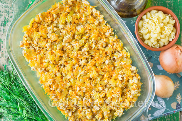 Зверху рівномірно розподілимо обсмажені овочі з фаршем.