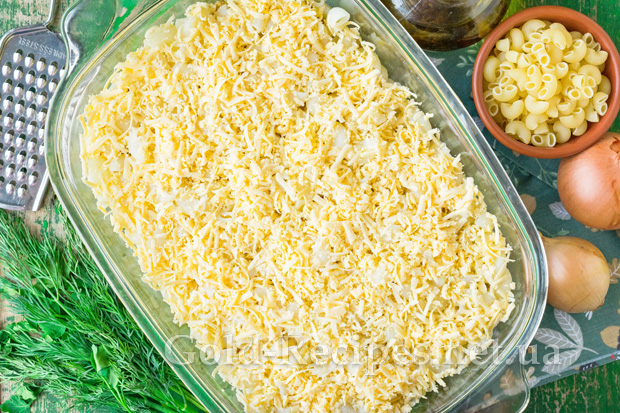Зверху рівномірно розподілимо стружку тертого твердого сиру.