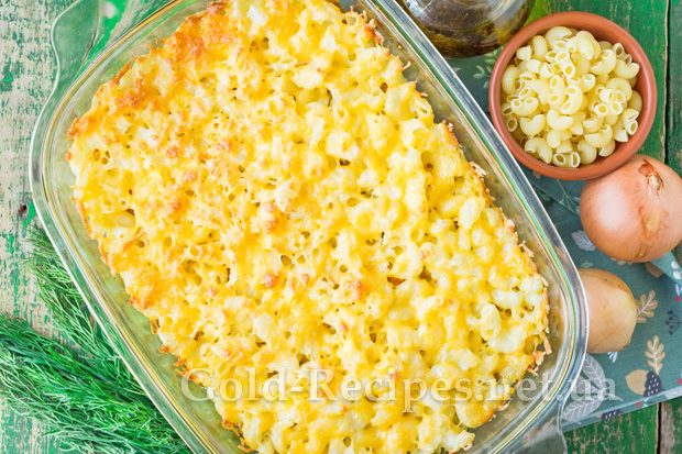 Запіканка виходить дуже соковитою і ситною, з апетитною сирною скоринкою зверху.