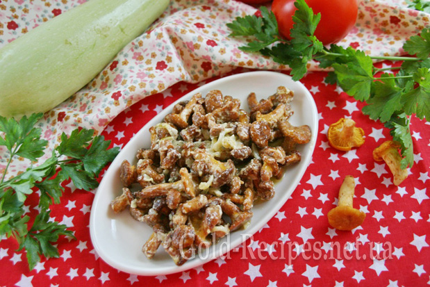 Для цього рецепта я використовувала лисички, смажені в сметані – вони дуже добре поєднуються з кабачками за смаком.