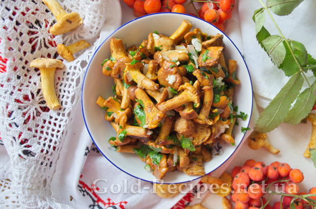 Подаємо смажені лисички гарячими або холодними.