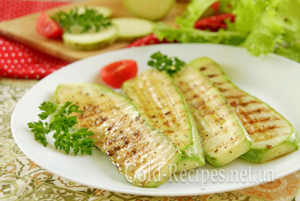 Виглядають кабачки на грилі, дуже апетитно – через смужки здається, що готувалися вони на мангалі.