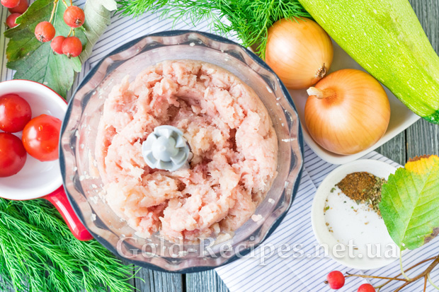 М’ясо (у мене свинина) помиємо, зачистимо від жиру і плівочок, поріжемо на шматочки середньої величини. Подрібнимо м’ясо на фарш за допомогою блендера або м’ясорубки.
