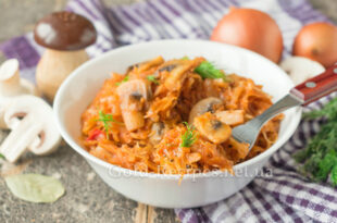 Тушкована капуста – досить поширена страва, улюблена багатьма. Вона дуже смачна, дієтична і проста в приготуванні. Щоб урізноманітнити смак тушкованої капусти, до неї додають моркву, цибулю, картоплю, а також курку чи свинину. Але найбільше мені подобається тушкована капуста з грибами. Цей рецепт підійде вегетаріанцям, веганам і тим, хто дотримується посту …