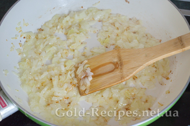 Цибулю чистимо, нарізаємо якомога дрібніше, і обсмажуємо на олії до золотистості.