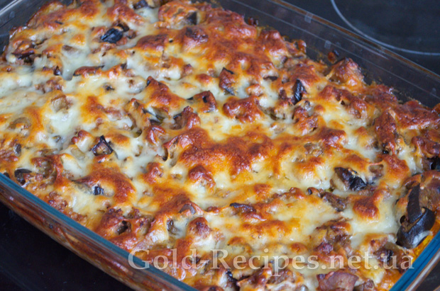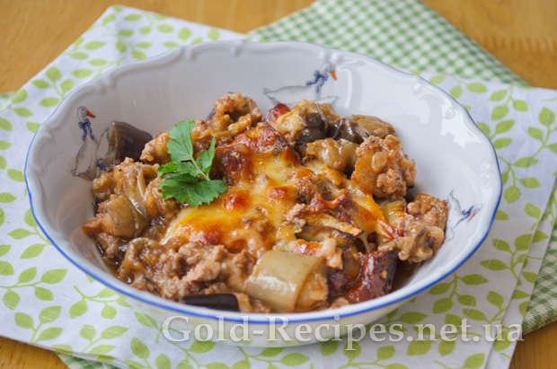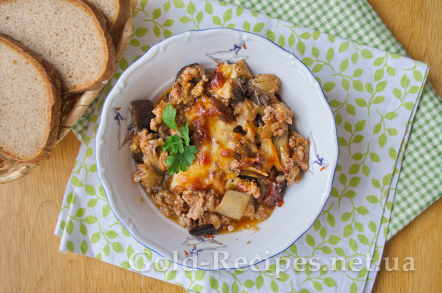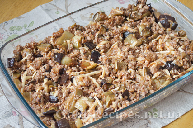 Форму з баклажанами і фаршем під сиром відправляємо в розігріту до 180 градусів духовку на 20-25 хвилин.