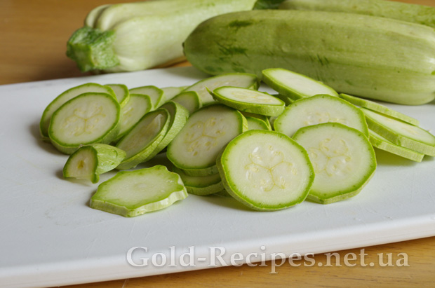 Кабачки миємо в холодній воді, обрізаємо краї, і нарізаємо кільцями, приблизно 3 мм завтовшки.