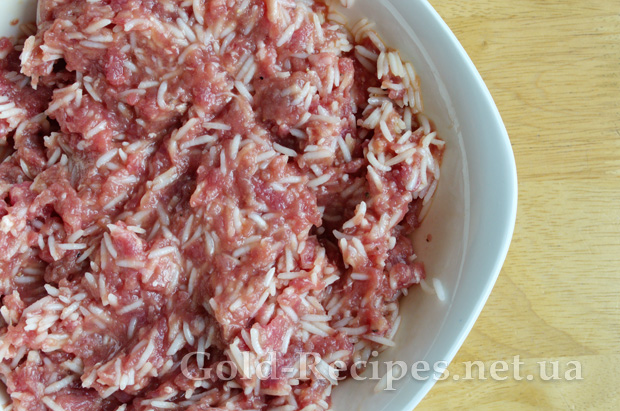 Ретельно перемішуємо фарш із рисом, щоб вийшла однорідна маса.