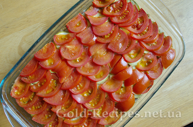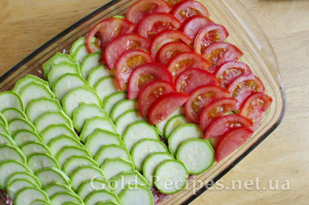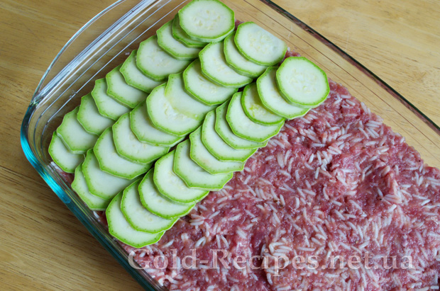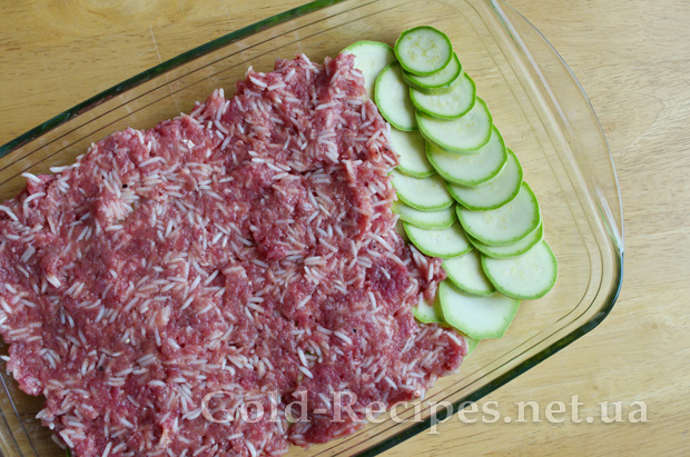 Потім поверх м’ясного фаршу викладаємо другий шар із кабачків.