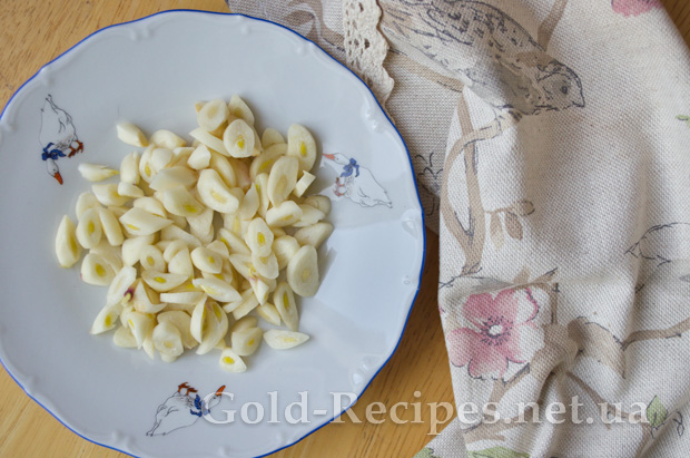 Дістаємо лосось з холодильника й очищаємо шматки від часнику та імбиру: вони вже зробили свою роботу, і нам більше не потрібні.