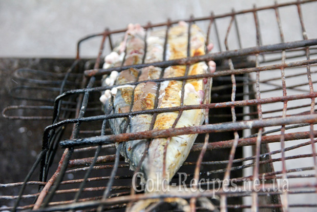 Коли вугілля буде готове, викладаємо скумбрію на решітку і відправляємо на мангал. Готується риба на мангалі, як я вже говорила, дуже швидко, буквально за десять хвилин. Тож будьте уважні, постійно її перевертайте, підставляючи вугіллю то один, то інший її бік.