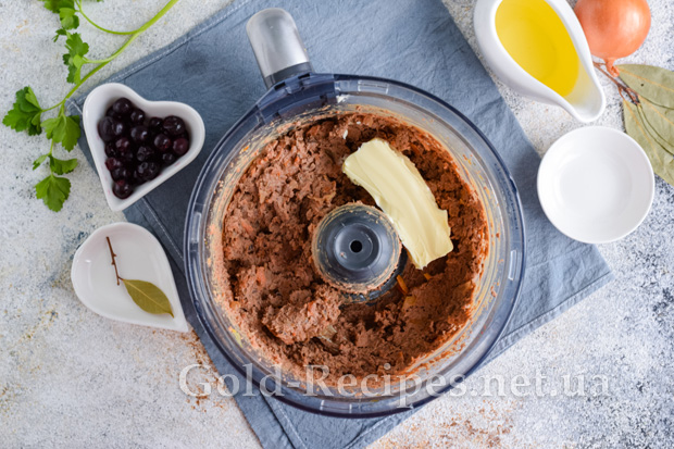 Додаємо в паштет розм’якшене вершкове масло.