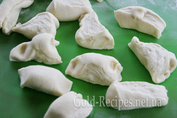 Робимо з тіста «ковбаску» діаметром приблизно 4 см, ділимо ковбаску тіста на невеликі, приблизно однакові, шматочки (вагою близько 25 г).