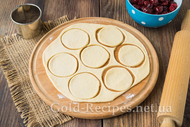 За допомогою спеціальної форми або склянки виріжемо з тіста кола.