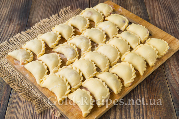 Потім защипнемо краї вареника і сформуємо по краю хвилясту косичку для краси. Викладемо заготовки на обробні дерев’яні дошки, присипані борошном.