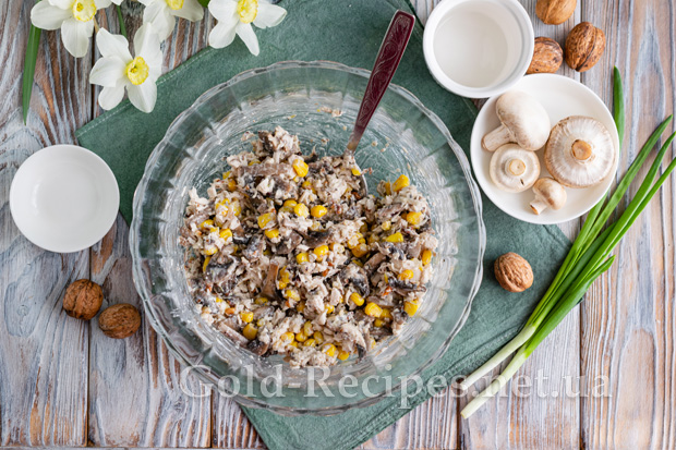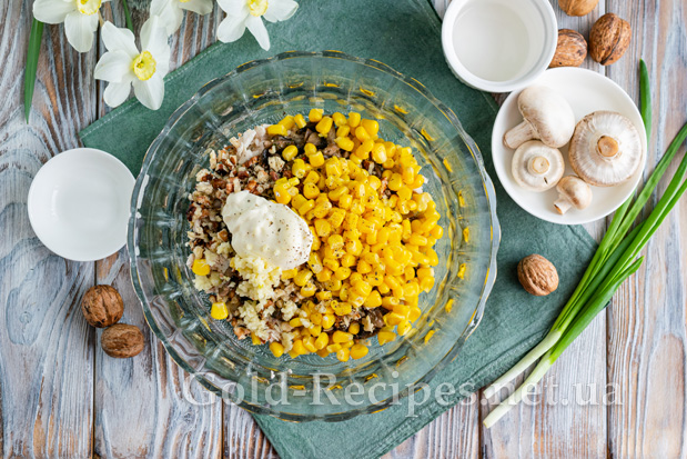 Як заправку будемо використовувати майонез. За бажанням його можна змішати в рівних пропорціях із натуральним йогуртом або густою сметаною.