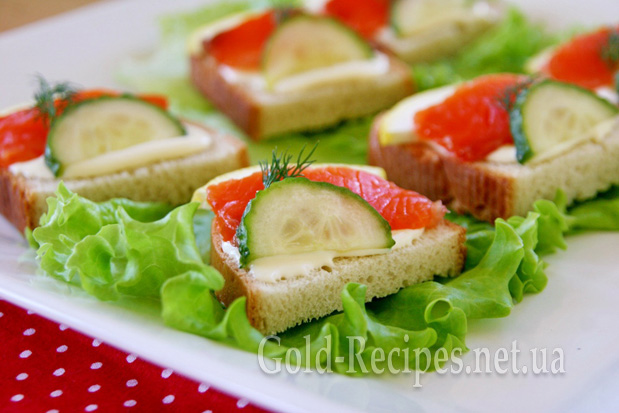 Ось і все, бутерброди на святковий стіл із червоною рибою можна подавати на стіл. Вдалого вам свята і гарного настрою!