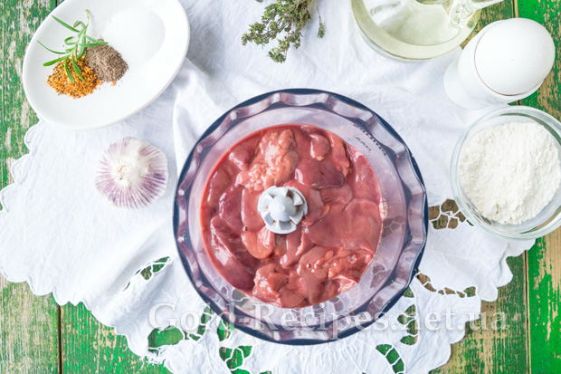 Курячу печінку помиємо, зачистимо від плівок і прожилок. За необхідності розріжемо великі шматочки навпіл. Перекладемо підготовлену курячу печінку в чашу блендера і подрібнимо до однорідного стану.