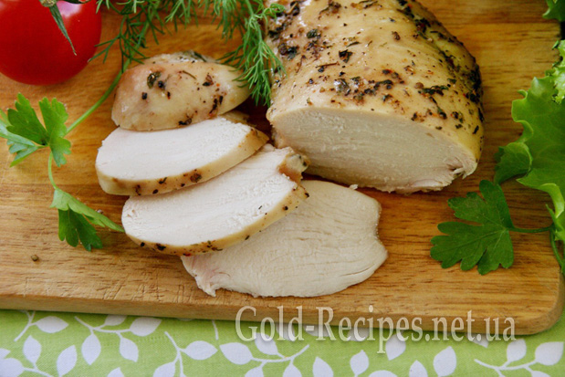 Ось і все, залишилося лише вийняти філе з рукава. Філе буде смачним і в гарячому, і в холодному вигляді. Але врахуйте, що охолодла куряча грудка легше нарізається.