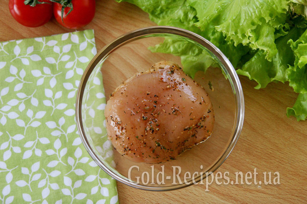 Викладаємо філе у зручну ємність, яку закриваємо кришкою або запаковуємо харчовою плівкою. Залишаємо грудку в такому вигляді промаринуватися протягом години.
