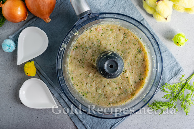Подрібнюємо інгредієнти в густий однорідний фарш.