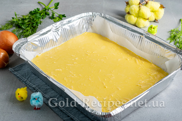 Застилаємо деко або форму для запікання пергаментним папером. Я використовувала форму для випічки з алюмінієвої фольги розміром 26 на 32 см.